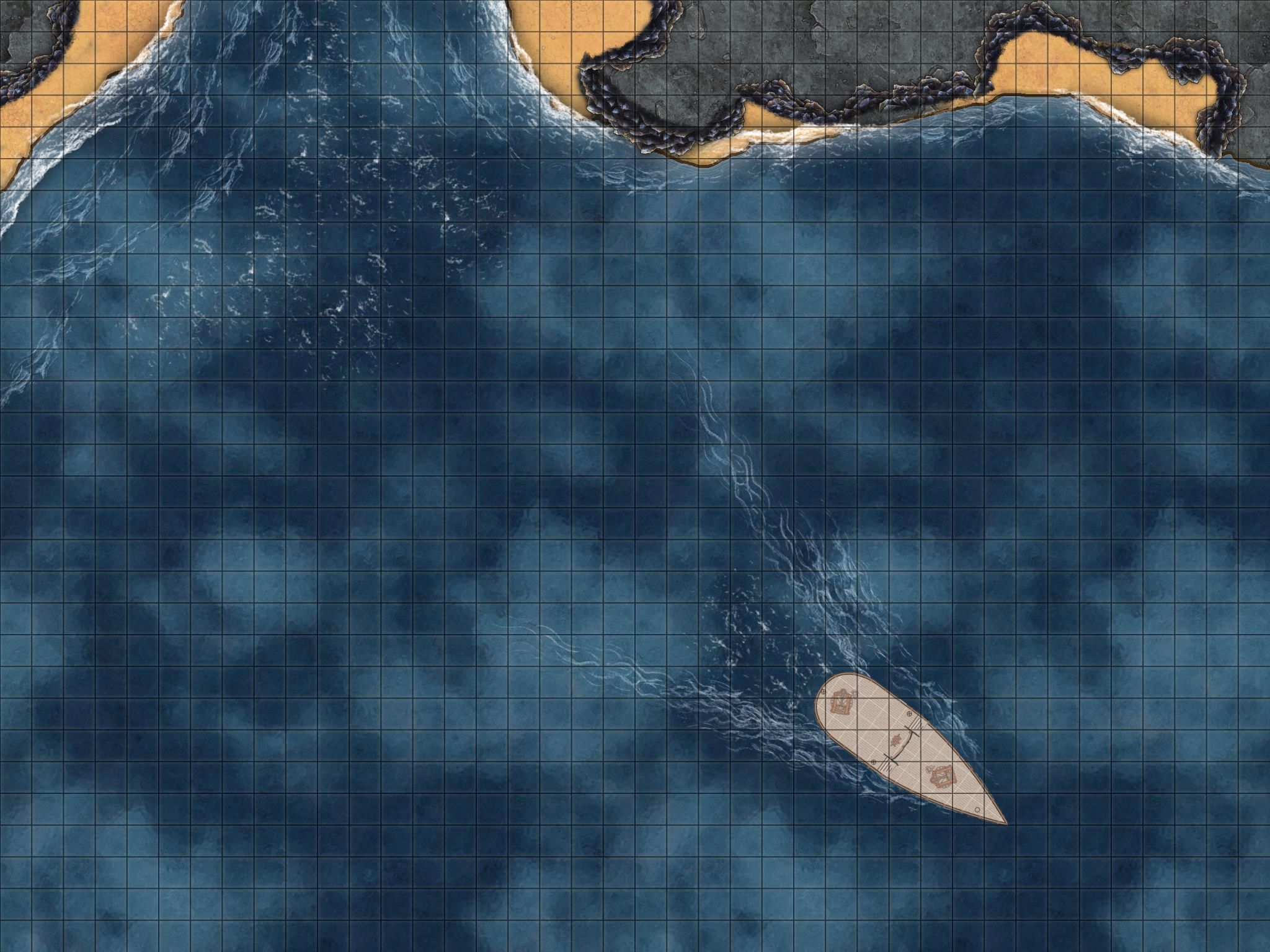 (Miresen the 8th of Horisal) In the morning just after finding the wreckage of the vessel, the party encountered the bodies of 24 kuotoa in the process of being eaten by six monstrous demonic black puddings. The Captain ordered the engines cut off and let the ships forward momentum slowly silently carry the Ship by unnoticed as the Demonic beings continued their grizzly feast. The strategy worked and the horrific scene was left behind in the darkness. Once they had drifted far enough the Captain ordered full ahead and the ship surged forward into the darkness. That night during the third watch, the party on watch saw 5 Quipper swarms start following the ship.Nesdeth grabbed a net and managed to catch 8 fish. As she and the cook were cleaning them they found some of the fish had swallowed gems or eaten the unlucky owners of the gems The loot was: