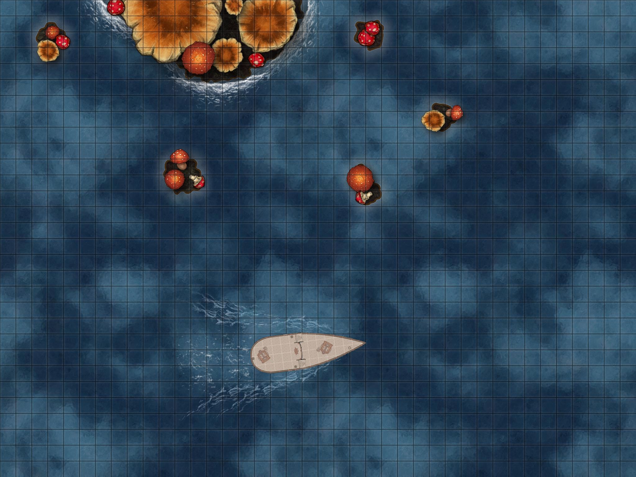 (Da’Leysen the 7th of Horisal) The next day the Theurgeme sailed past the Zurkhwood Point. the familiar promontory that juts out into darklake, featuring Gigantic Zurkhwood mushrooms. There were also several small islands that rose from the water around the point. Many of the islands had no hostile creatures and made good places for folks to take a long rest. There were all types of fungi growing atop the small islands. The Ship continued on into the night watch and during the fourth watch Abnar spotted floating debris in the water that looked like bits of broken ship, chests, sacks, and scattered shiny coins glittered from the sandy bottom. The water here is not that deep and the bottom is visible in the low light. Chardalyn said “well there's only one way to find out what it is”, dropping her robes, she dived naked into the dark water. Uthamar doffed his clothing as well and joined her in the water while the rest of the folks on deck looked out for dangers lurking in the water. It takes them one hour to collect all the salvage: